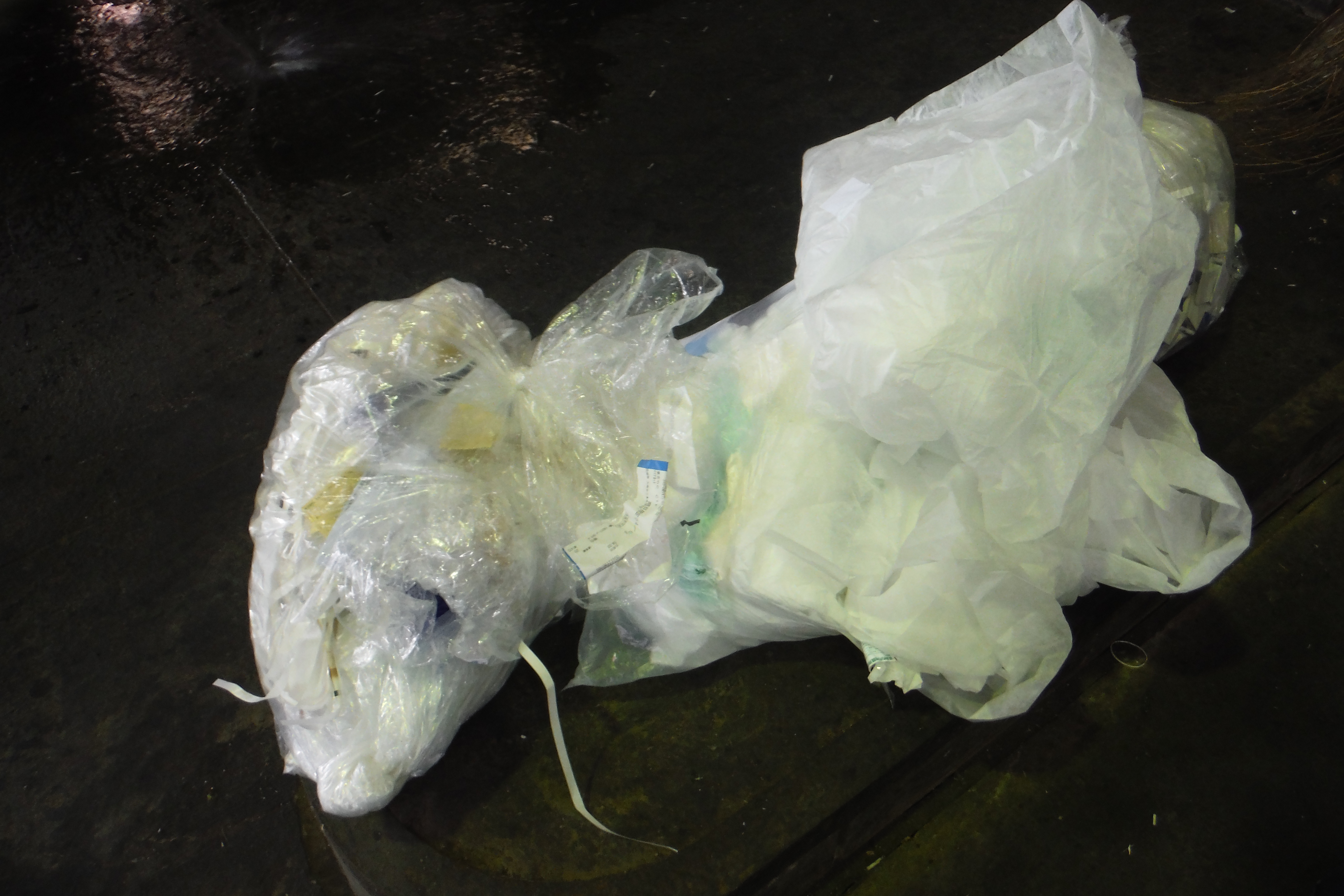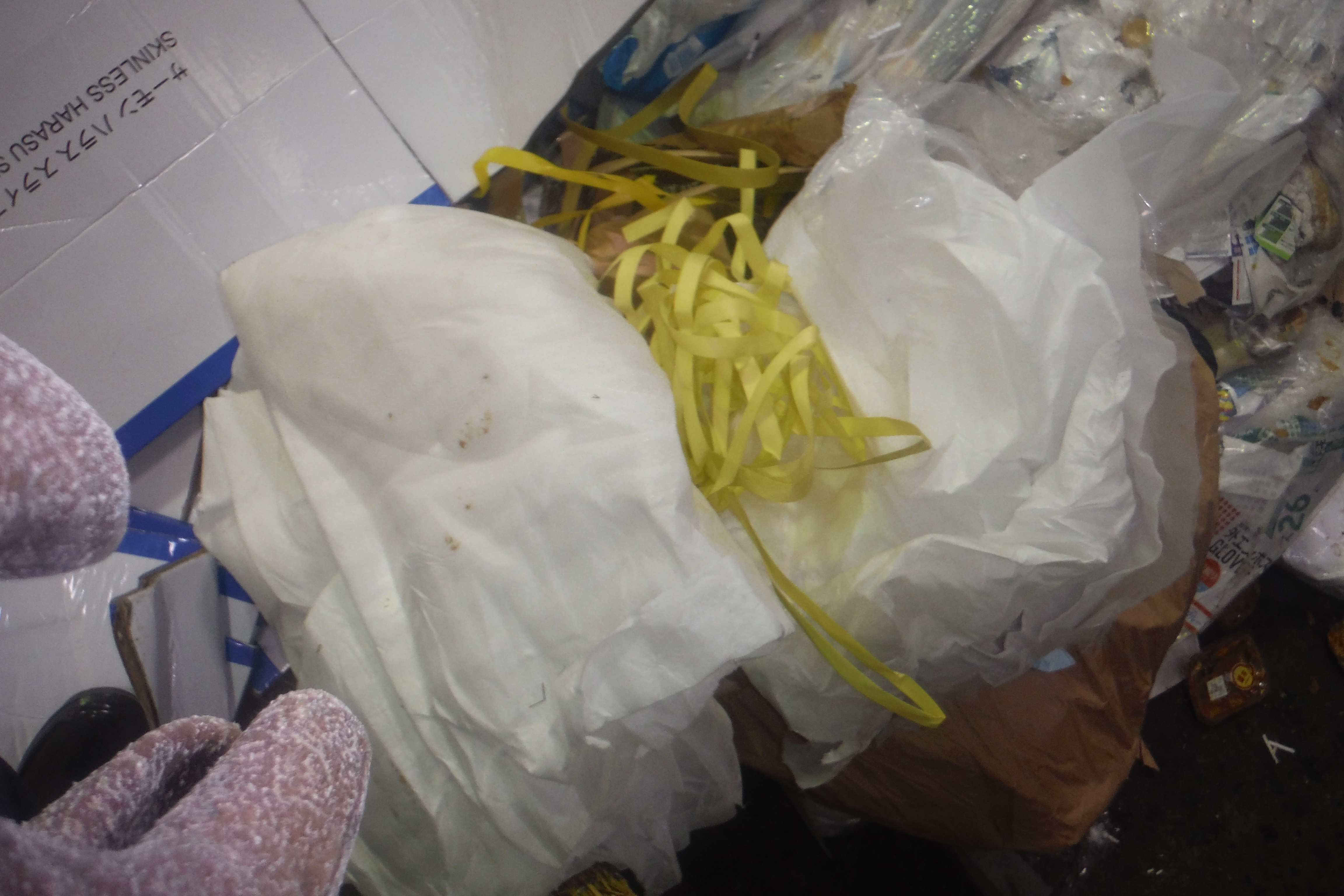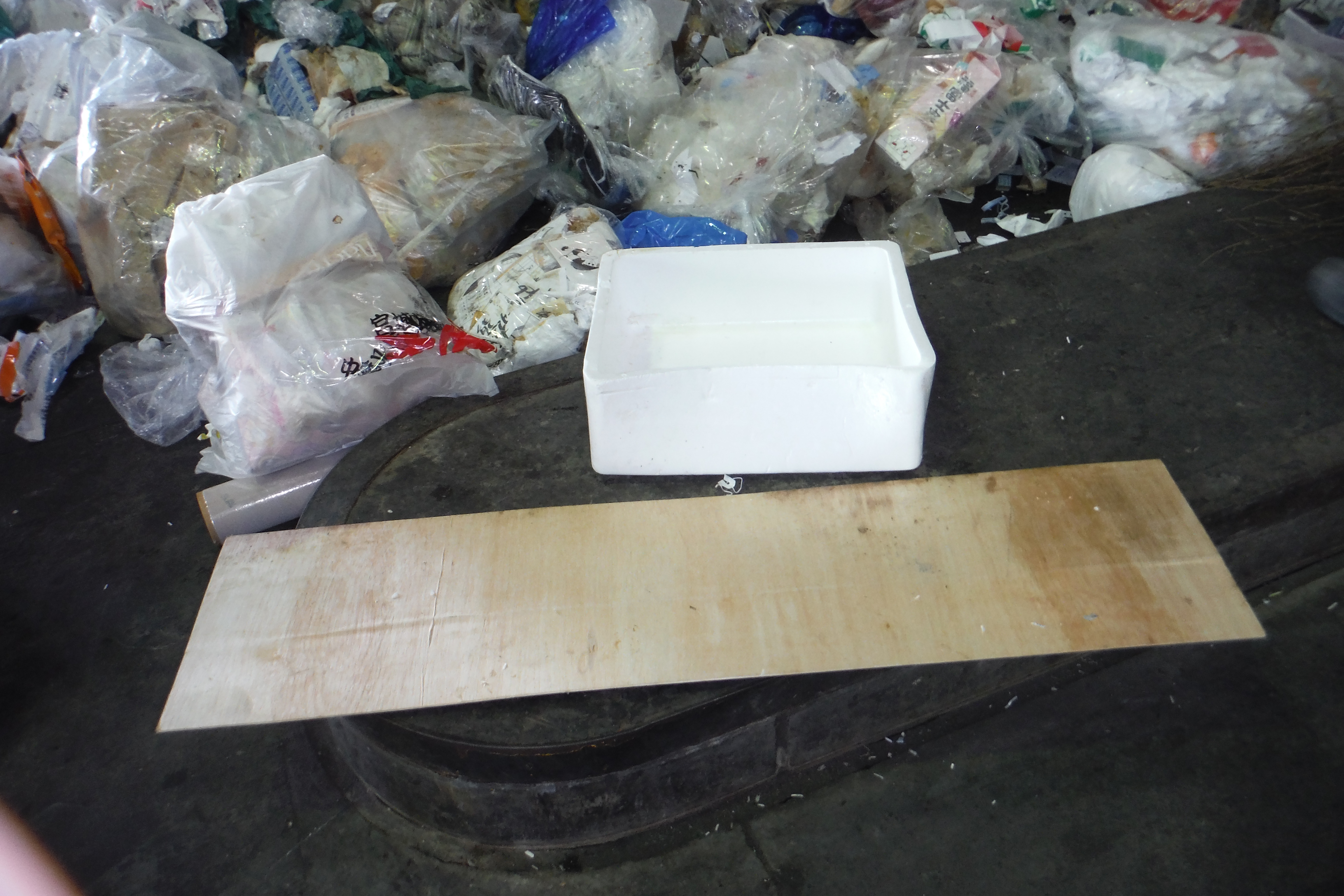 産業廃棄物の混入 プラスチック製品(PPバンド、発泡スチロール、ゴム手袋)