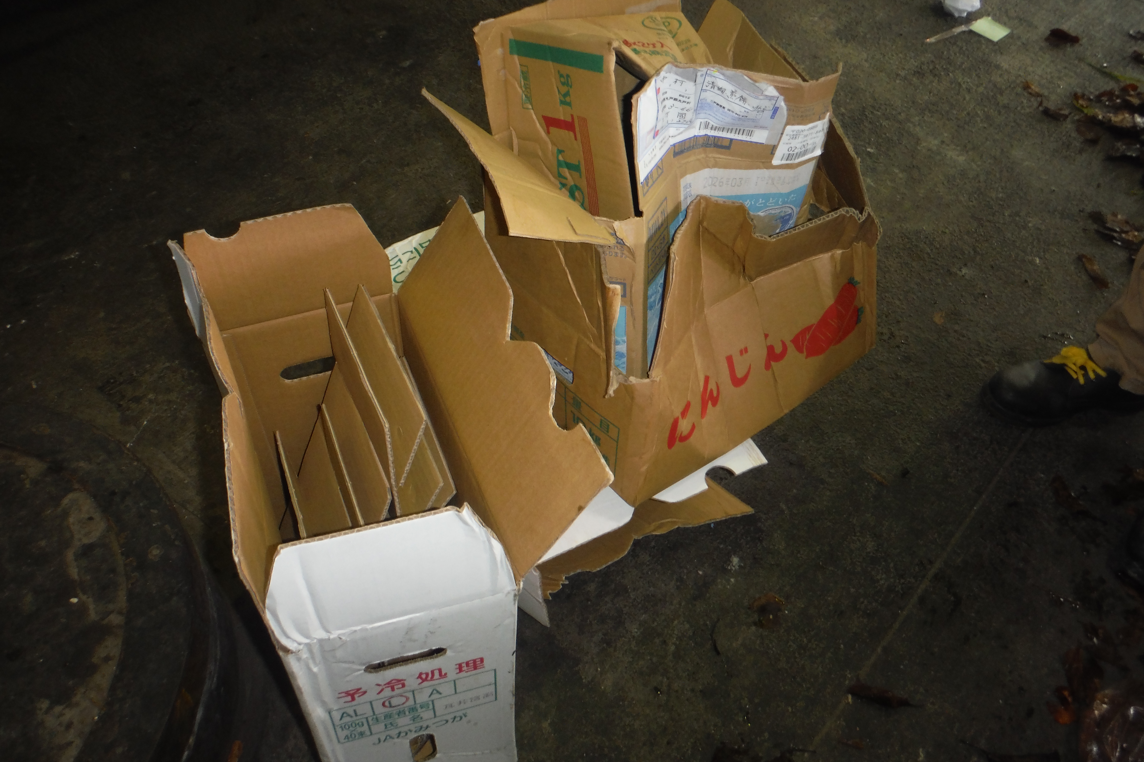 産業廃棄物及び資源物の混入 プラスチック製品(PPバンド)、段ボール